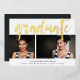 A modern graduation announcement featuring two of your favourite senior portraits or graduation photos aligned side by side, with "graduate" overlaid in gold foil hand sketched lettering. Personalise the front side with the graduate's name, school and class year, and add a personal message to the back.