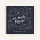 Personalised our family recipe book featuring white sketched kitchen essentials set on a navy blue background and customised with your name on the cover. Visit our shop to view our large selection of unique recipe notebooks.