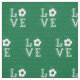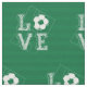 A cool sports soccer design featuring a typography style love lettering with a soccer ball in white on a green football soccer field background. Ideal for any soccer fan or football player.