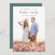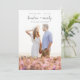 This elegant and minimal photo save the date card features a full bleed vertical photo with your names at the top in dark grey casual handwritten script lettering. Personalise with your wedding date and location, and add additional details, like your wedding website, to the back. Due to the delicate lettering and minimalist nature of this design, we recommend this style for vertical photos with ample white space at the top.