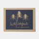 Perfect for the holidays, winter time, or your woodland home or cabin, this cute forest themed doormat features "welcome" in handwritten calligraphy script, with a trio of hand sketched pine tree illustrations. Personalise with your family name.