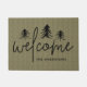 Perfect for the holidays, winter time, or your woodland home or cabin, this cute forest themed doormat features "welcome" in handwritten calligraphy script, with a trio of hand sketched pine tree illustrations on a moss green background. Personalise with your family name.