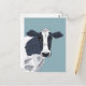 Free style cow doodle on calm grayish blue background, with blue tones and cool atmosphere. Fun animal portrait for animal lovers (especially cows!)
