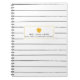 A spiral notebook for teachers featuring a sketchbook inspired black thin stripe design on front. Front features custom text under illustration of a golden yellow apple.