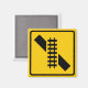 International style road and highway sign advising of a railroad crossing the roadway diagonally!