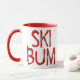 Ski bum text decorated with skis is a fun skiing gift design for downhill, cross country and twin tip skiers.