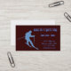 This fun business card shows a man skiing on the left side. The front is reserved for your business information. All text is customisable