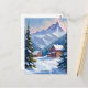 Ski Cabin Mountain Landscape Watercolor Winter Postcard