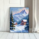 Ski Cabin Mountain Landscape Watercolor Winter Poster