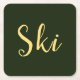 SKI Fun Modern Script Elegant Dark Forest Green Square Paper Coaster