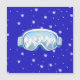 Ski Goggles with mountain reflection. Ski goggles and Snowflake Pattern on blue background. Playful sport winter design.