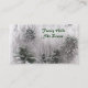 This business card advertises a ski resort. The lovely image on the front represents the essence of winter. Evergreen trees stand out against the bare branches of deciduous trees on a frosty hillside. Every branch and needle is covered with snow, ice and frost. The full effect is a painterly impressionistic composition of the season. The back has all your pertinent information ready to be customised to fit your personal situation.