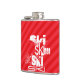 The flask itself is fine. It’s a cheap flask, obviously bought in bulk, however am prepared to overlook that. Given that it is a personalized item, I would have liked to have seen gift boxing instead of the generic packaging. Terrible printing, and/or quality. It’s a cheap, tacky vinyl. It is not cut straight and is also applied in a way that it is overhanging the bottom, causing the glue to catch on items and it will eventually roll and tear, damaging the wrap.