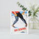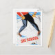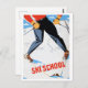 Ski school, man on ski, vintage travel postcard