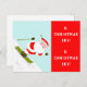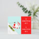 Skier Christmas holiday cards featuring cartoon Santa downhill snow skiing and funny quote for skier, ski equipment rental shop and ski resorts.