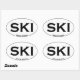 This SKI oval sticker denotes the sport of snow skiing. Across North America, skiing is popular wherever winter snowfalls create favourable conditions. In some areas, enthusiasts ski on artificial snow.