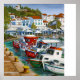 From an original painting in acrylics on canvas, of colorful fishing boats in Askiathos Old Port, Greece