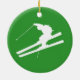 Unique and colourful red and green snow skiing Christmas ornaments for snow skiers to decorate the holiday Christmas tree. Awsome Christmas gifts for skiers!