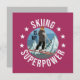 Funny winter ski sports illustration, showing mountain graphics and a woman on skis, and the saying: skiing is my superpower and little stars. This is the perfect gift for everyone, who loves skiing, mountains, and winter sports.