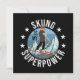 Funny winter ski sports illustration, showing mountain graphics and a woman on skis, and the saying: skiing is my superpower and little stars. This is the perfect gift for everyone, who loves skiing, mountains, and winter sports.