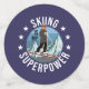 Funny winter ski sports illustration, showing mountain graphics and a woman on skis, and the saying: skiing is my superpower and little stars. This is the perfect gift for everyone, who loves skiing, mountains, and winter sports.