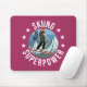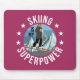 Funny winter ski sports illustration, showing mountain graphics and a woman on skis, and the saying: skiing is my superpower and little stars. This is the perfect gift for everyone, who loves skiing, mountains, and winter sports.