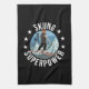 Funny winter ski sports illustration, showing mountain graphics and a woman on skis, and the saying: skiing is my superpower and little stars. This is the perfect gift for everyone, who loves skiing, mountains, and winter sports.
