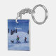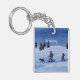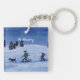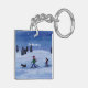 A watercolor painting of cross-country skiers adorns this customisable keychain!
