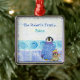This whimsical Penguins at Play character is hand water coloured by Audrey Jeanne Roberts and can be personalised for the perfect Family Commemorative Christmas Ornament, especially for a winter play, skiing or snowboarding family! Perfect to be treasured for a lifetime. This delightful penguin with a baby penguin announces is layererd over a blue and white stripe with snow flake border and a winter swirl wind border. You can easily place your own text where the sample text is now. YOU MIGHT ALSO ENJOY: