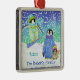 These whimsical Penguins at Play characters are hand water coloured by Audrey Jeanne Roberts and can be personalised for the perfect Family Commemorative Christmas Ornament, especially for a winter play, skiing or snowboarding family! Perfect to be treasured for a lifetime. This delightful penguin on a snowboard is layered over a blue, aqua blue swirly sky and a field of snow, along with a baby and grown up penguin. You can easily place your own text where the sample text is now. YOU MIGHT ALSO ENJOY: