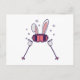 Skiing Rabbit with ski poles and ski goggles Postcard
