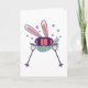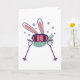 Skiing Rabbit with ski poles ski goggles and scarf Card