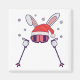 Skiing Santa Rabbit with Santa Hat and ski poles S Magnet