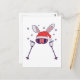Skiing Santa Rabbit with Santa Hat and ski poles S Postcard
