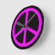 A wall clock with a giant skinny pink peace symbol on a black background. Click Customise It to change background colours, choose fonts and add your message.