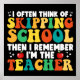 Funny teachers last day of school design, I often think of skipping school then I remember I'm the teacher. Humourous quote design for teachers men and women. It makes a great last day of school gift for teacher mum, dad, aunt, uncle, daughter, son, friend, coworker... Funny skipping school outfit for teachers of all grades, proudly wear this to school in last day of school and make everyone smile, say goodbye school in style.