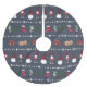 Decorative skirt for base of Christmas tree. Design printed with potato Noel, Santa Claus, gifts, socks, placebo and snowflakes on a dark background. Give a fun touch to your tree with this skirt and you can create a nice set of papers to wrap gifts from the same collection of designs.