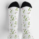 Winter ski scene with pine trees and snowflakes over a white background. Skiing socks. Downhill skiing pattern. Red, white and green ski pattern. Christmas socks. Ski lovers socks. Ski lovers gift. Person on skis. Modern ski pattern. Ski illustration. Holiday socks. Skiing gift. Winter ski socks. Cute skiing socks.