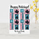 Skis & snowflakes, boots, hats, & goggles on a fun holiday card. Perfect for the Christmas season for friends and family.