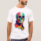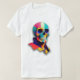 Colorful, stained skull illustration. It features impressive use of geometric patterns and bright colors, making it a bold and striking design. Angular and abstract elements give it a modern and artistic touch, ideal for making a prominent fashion statement.