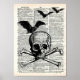 Skull and Bats Halloween Dictionary Art Print on Vintage Dictionary Page Reproduction Poster