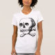 This design is a little creepy because it is a skull and bones. The skull and bones look quite authentic, The design has a the skull that is then sitting on top of some bones. This skull and bones design looks great on this womens t-shirt. Perfect for yourself or as a gift