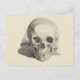 A good looking old engraving of a skull resting on a book. I don't think he's reading the book, it's just to keep him from rolling off of the table.