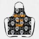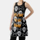 This apron has a Halloween design of skulls and crossbones repeating across the design.