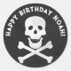 Add a bold touch to your Halloween birthday party with this skull and crossbones sticker! Featuring a white skull on a black background and customisable birthday text, it's perfect for party favours, treat bags, thank-you notes, or envelope seals.