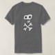 Pirate t-shirt. Design is a loose style drawing of a skull and crossbones. Pirate design. Jolly Roger.
