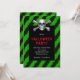 Skull And Crossbones Green Stripe Halloween Party Invitation