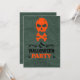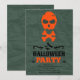 Scary Skull and Crossbones Halloween Party Invitation featuring a bright orange skull and crossbones illustration against a textured dark green background. You can move/delete/change most of the design elements/fonts/background according to your choice/preferences. Do not forget to choose paper type when ordering your invitations!