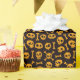 Orange and black skull and crossbones skeleton wrapping paper for kids on halloween or a pirate theme children's birthday party. Seamless pattern for any size roll of paper.
