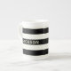 A cute skull and crossbones on black and cream striped bone china coffee mug with space for your name. Suitable for all pirates! Set sail for great coffee (or tea)